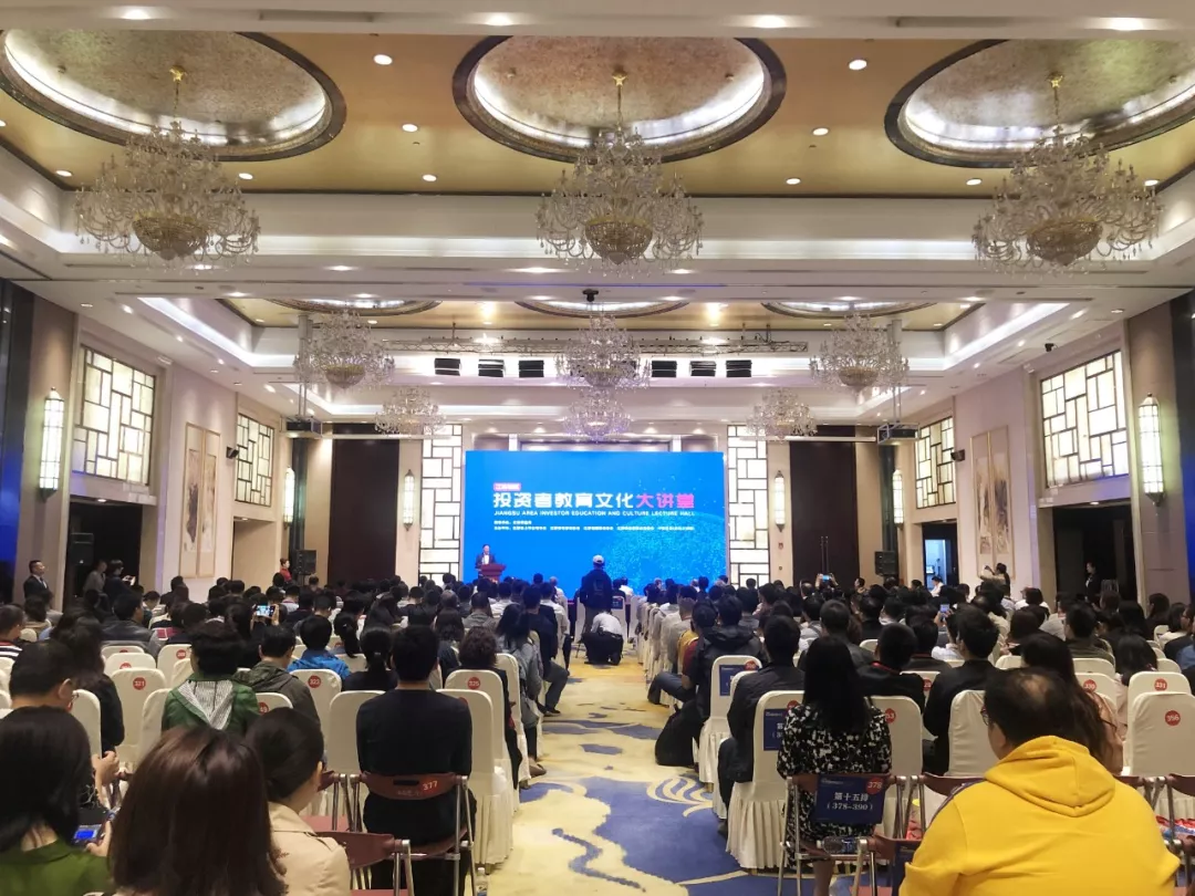 2019年10月12日,江苏省证券业协会联合江苏省上市公司协会、江苏省期货业协会、江苏省投资基金业协会与中泰证券合作在南京成功举办“江苏辖区投资者教育文化大讲堂”活动。来自江苏辖区证券、期货、基金及上市公司的代表和投资者500余人参加了活动。 活动邀请了著名学者“百家讲坛”主讲人纪连海先生和中泰证券首席经济学家李迅雷先生分别进行了金陵历史文化和宏观经济走势及大资产配置的讲座,下午还开展了文化主题沙龙——《读史阅世七十年》活动。投资者保护工作需要各方面的共同努力,江苏目前有境内上市公司418家,位居全国第三;证券期货法人公司15家,分支机构1100多家,私募基金管理人1100多家,证券开户数超过1700万。 本次活动得到了江苏证监局指导,2019年以来,江苏证监局联合各方开展了一系列投教工作,覆盖公众达72万人次,“科学投资、买者自负、风险自担”的理念不断得到深化,良好的投资者保护生态不断完善。