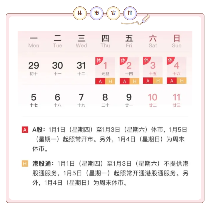 2026元旦假期休市安排