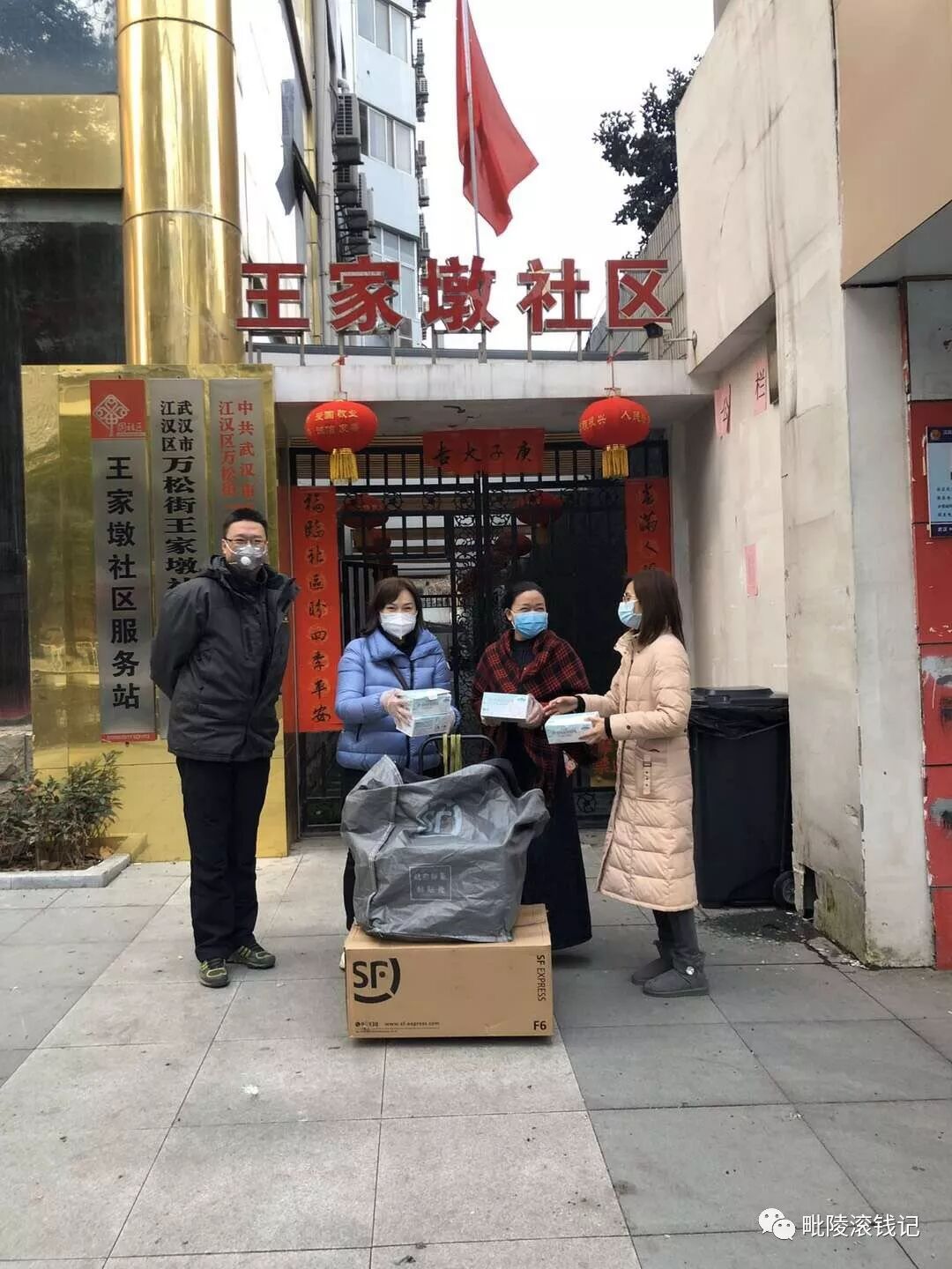 图为东海证券武汉营业部代表向社区捐赠口罩