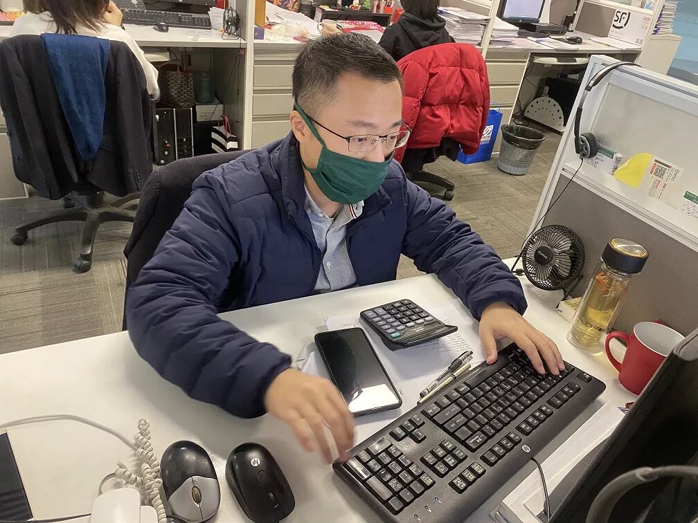 疫情之下,部门风控经理夏煜峰每日到岗并主动承担网络营业部的柜面工作,无怨无悔,坚守岗位。