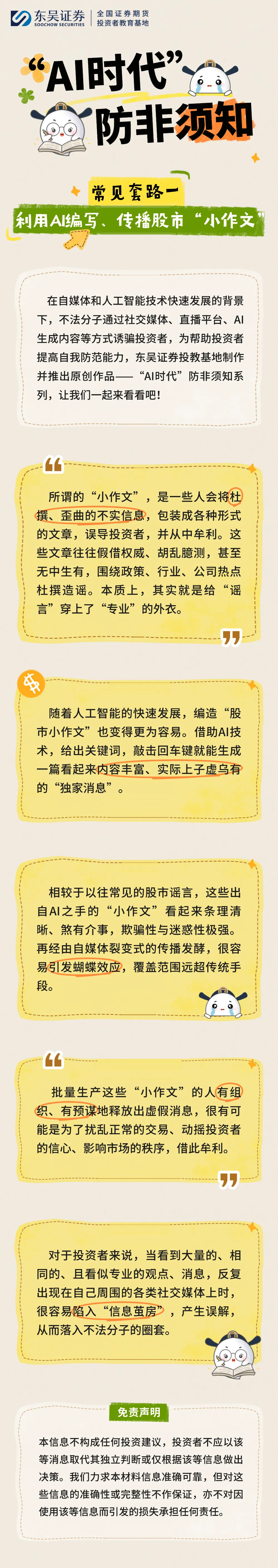 【投教宣传】“AI时代”防非须知 | 常见套路一:利用AI编写、传播股市“小作文”