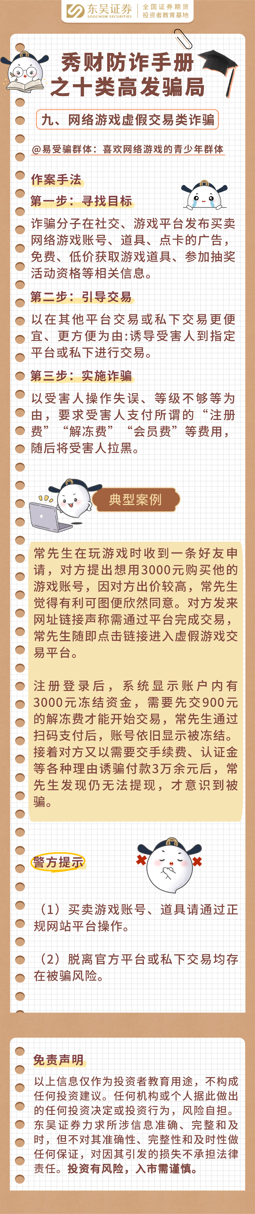 【投教宣传】秀财防诈手册之十类高发骗局 |网络游戏虚假交易类诈骗