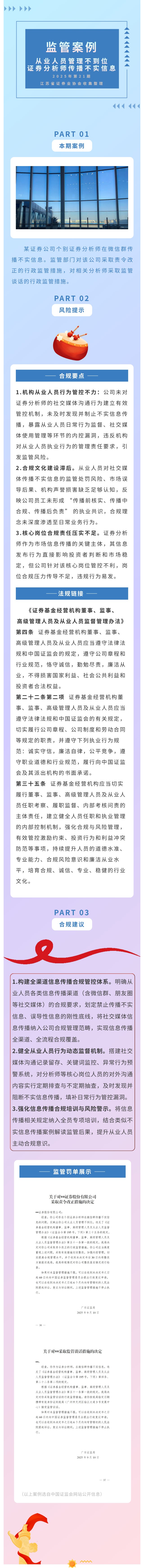 【监管案例】2025年第21期 从业人员管理不到位,证券分析师传播不实信息